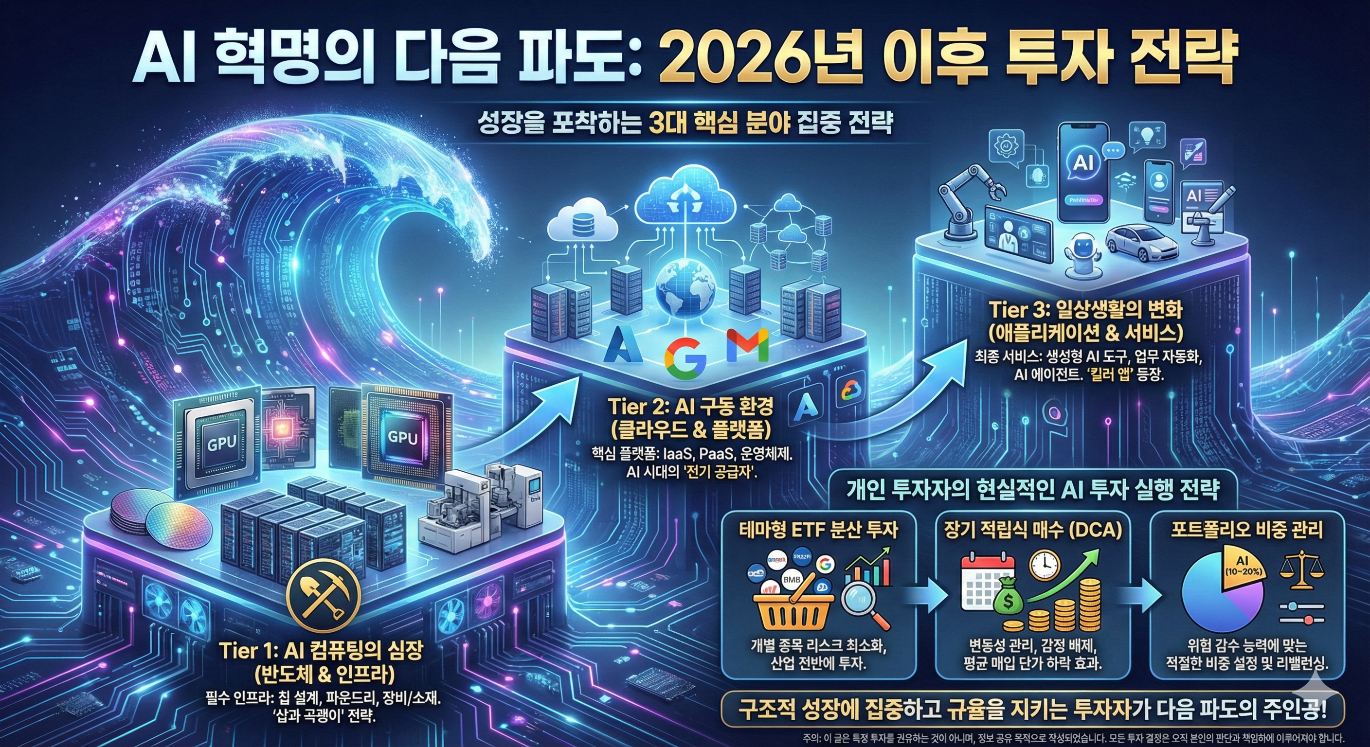 Question (질문): AI 혁명이 일시적인 유행을 넘어 장기적인 구조적 변화라면, 개인 투자자가 이미 상승한 선두 주자를 무작정 쫓지 않고도, 2026년 이후 AI 성장의 '다음 단계'를 체계적이고 안정적으로 포착할 수 있는 현명한 투자 전략은 무엇일까요?